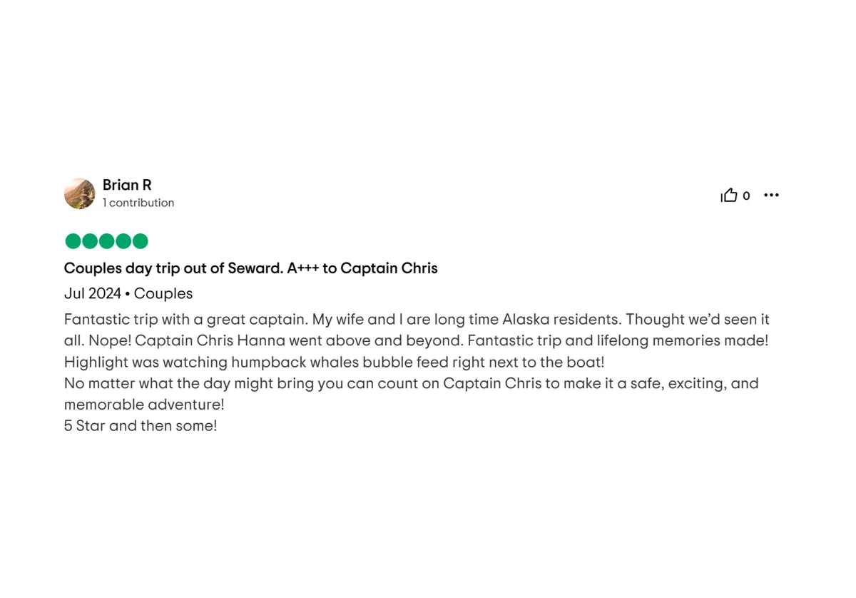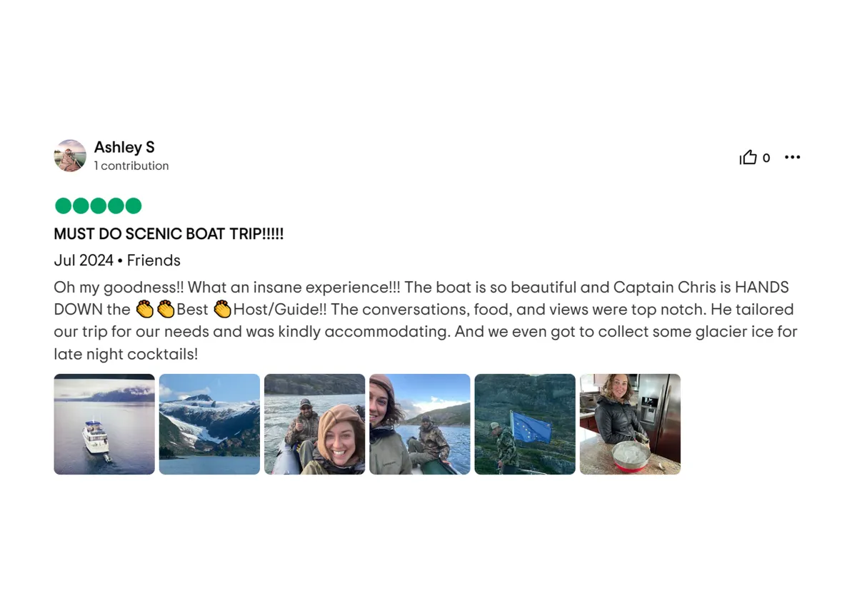 Whether you’re interested in whale watching, fishing, hiking, or glacier exploring, we’ll tailor the itinerary to your preferences. Let us know what you’d like to experience, and we’ll take care of the rest.